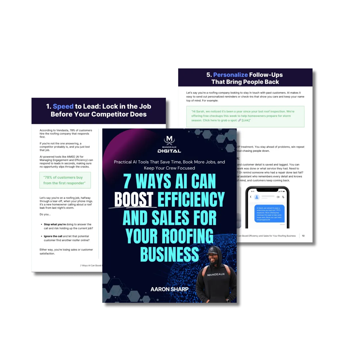 Start by downloading the free guide, “7 Ways AI Can Grow Your Roofing Business.” It walks you through what to expect and includes a link to schedule a free strategy session.